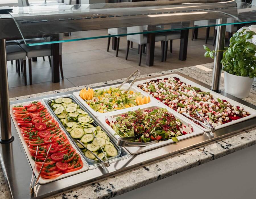 Śniadania w jadalni Rewita Jurata „Delfin” serwowane są codziennie od 8:00 do 11:00, na obiadokolacje zapraszamy od 16:00 do 19:00*. Nasz bufet to prawdziwa uczta dla podniebienia – różnorodne smaki kuchni polskiej i międzynarodowej, lokalne przysmaki – zawsze świeże, pięknie podane i dostosowane do różnych potrzeb dietetycznych.