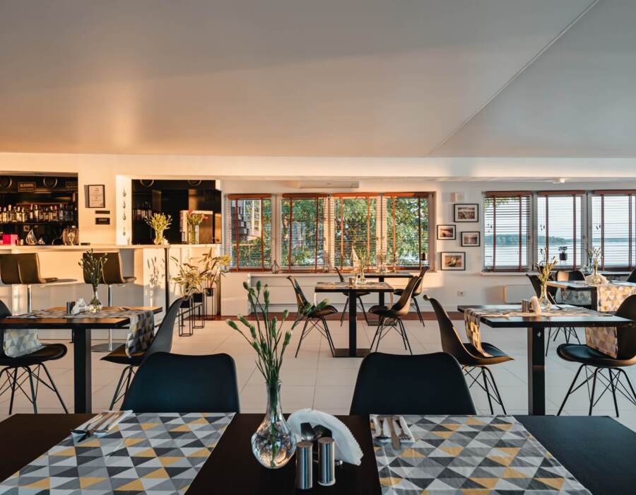 Przytulna restauracja „Róża Wiatrów” zachwyca wspaniałym widokiem na Zalew Zegrzyński oraz wykwintnym menu. Każde danie to efektownie podane, nietuzinkowe połączenie smaków, kolorów i faktur, które zachwycą najbardziej wymagających smakoszy, również amatorów sezonowych specjałów. Dodatkową atrakcją jest Bella – robot, który obsługuje naszych Gości.