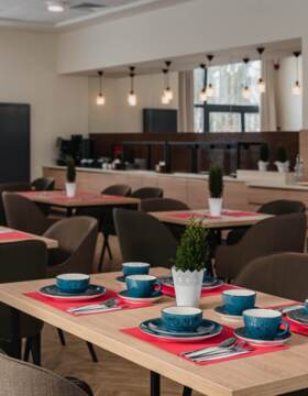 - pokoje 2-osobowe typu Studio i Apartament – przestronne wnętrza z telewizorem, łazienką oraz zestawem do parzenia kawy i herbaty;